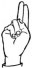 На ћирилици написано АНДРЕЈ БИБЕР састоји се из 11 слова [?]. Исписано ћириличном једноручном азбуком за глувонеме: